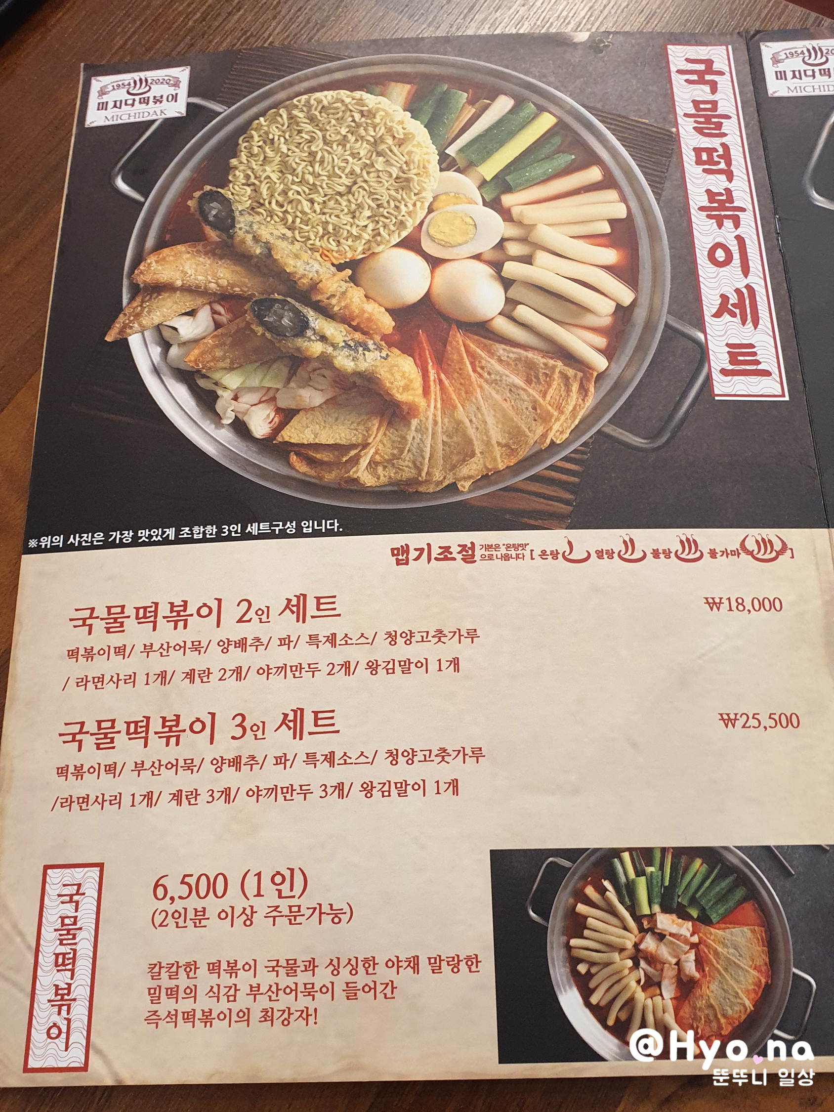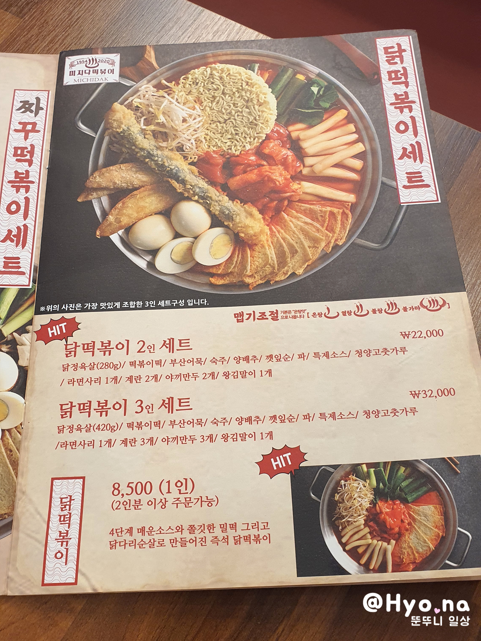저희가 주문한 건 2인 세트 메뉴, 1단계 맵기였어요