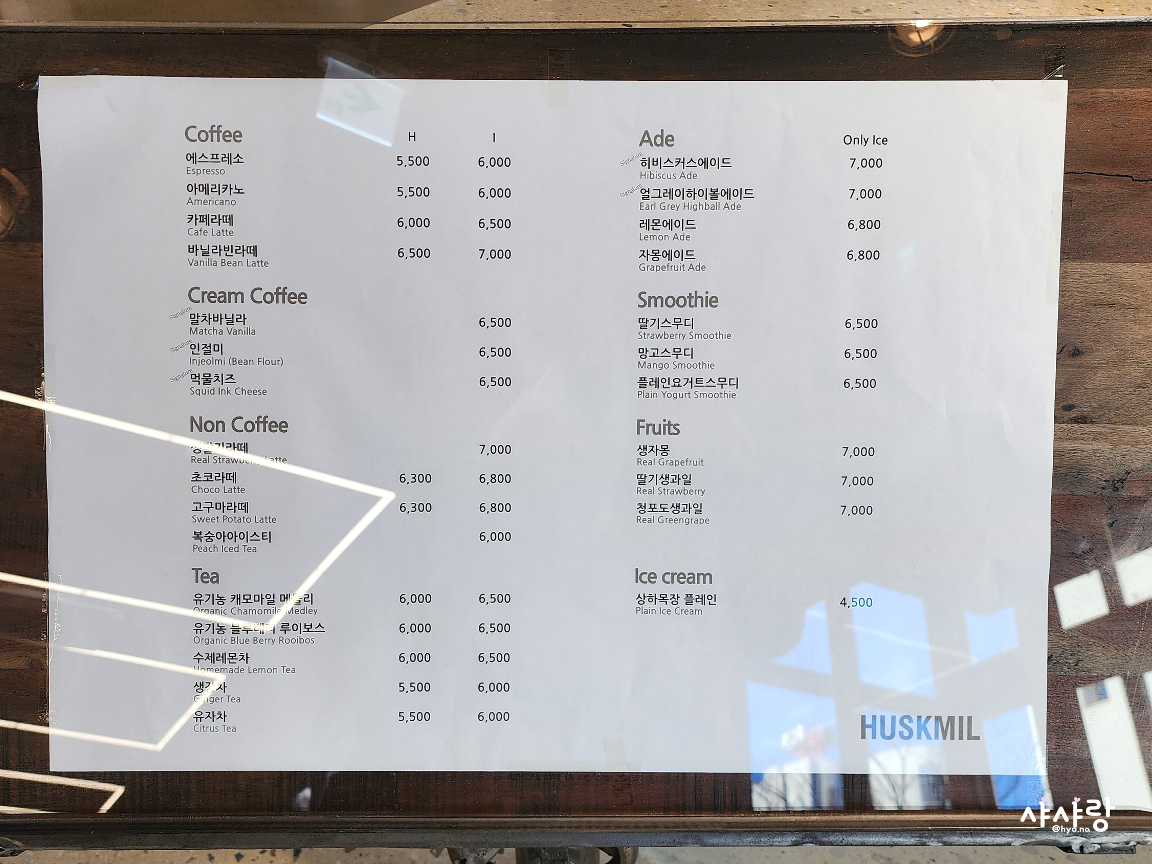 그때 당시 강릉 허스크밀 메뉴판이에요!
